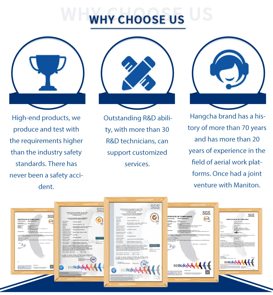Equipped with a sturdy platform and comprehensive guardrails, operator safety is paramount. The all-terrain tires allow for smooth operation across varied ground conditions, while the compact design facilitates maneuverability in tight spaces.